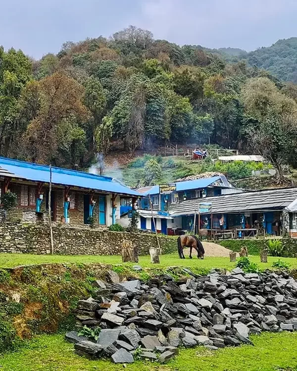 As you move forward, you walk through green jungles and tranquil Gurung and Magar villages. The trail upwards goes up gradually, passing the areas of the Australian Camp and Pothana. On the way, you can see rhododendron flowers and oak woods, particularly beautiful in spring.