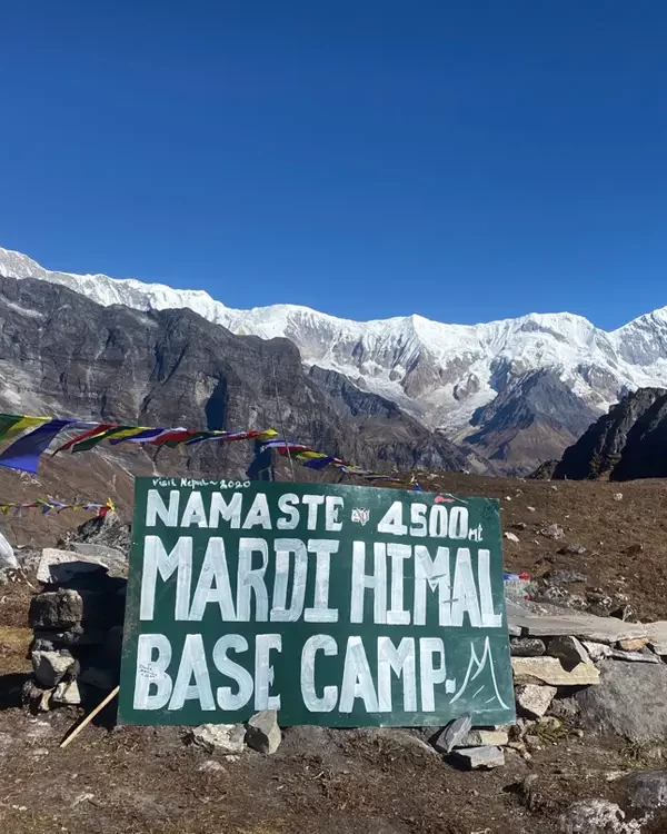 - Arrive at Mardi Himal Base Camp (4500 m) or Upper View Point (4200 m)